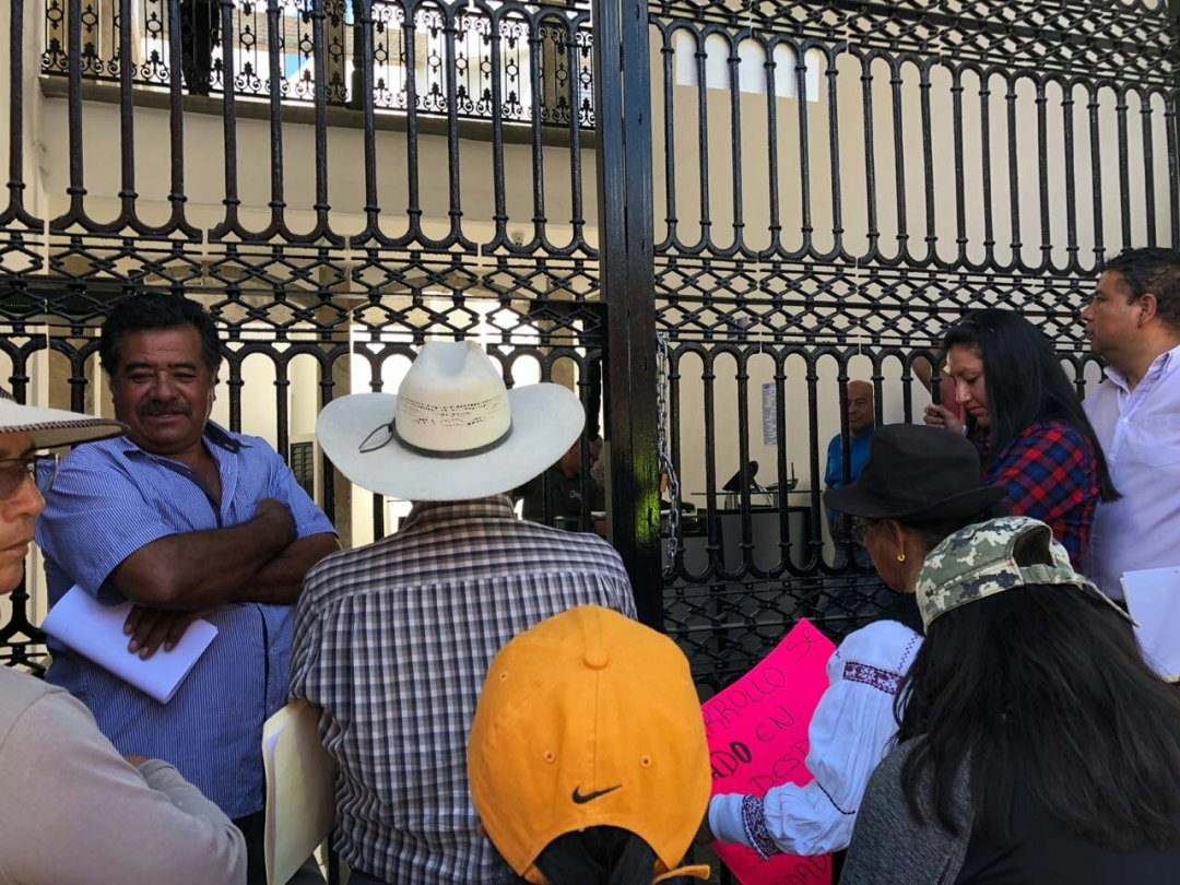 Poco más de medio centenar de personas acudieron la mañana de este viernes al Palacio Legislativo para exigir a los diputados locales la reinstalación del alcalde, Miguel Ángel Caballero Yonca, quien fuera suspendido desde el pasado 18 de abril.