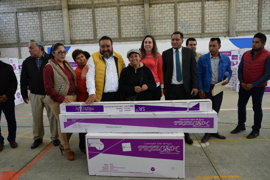 Como una forma de reducir el gasto que las familias realizan en el consumo de energéticos, el Presidente Municipal de Xicohtzinco, José Isabel Badillo Jaramillo acompañado de sus regidores y la Delegada Estatal de Sedesol en Tlaxcala, Mariana González Foullón, entregó 120 calentadores solares para la población.
