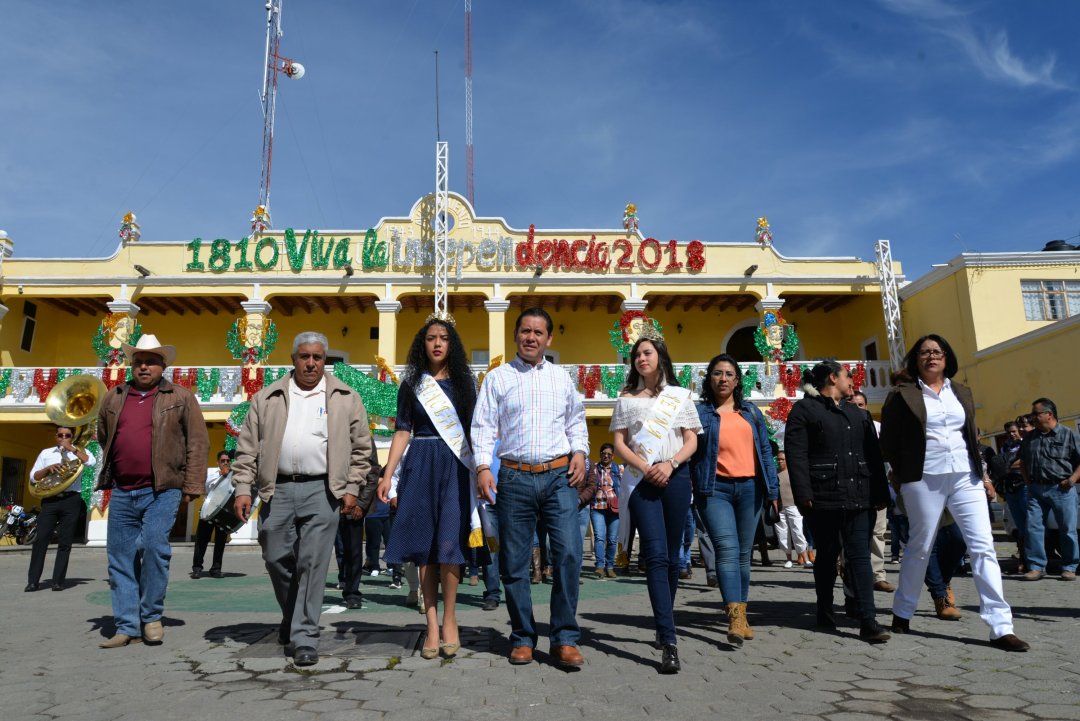 Sánchez Flores, encabezó el inicio de la conmemoración del CCVIII Aniversario de la Independencia de México, acompañado del Comisario Ejidal, Quirino Claudio Hernández Castillo, por la Reina Yamile del Razo Romano, la Princesa Paola Muñoz Juárez, e integrantes del Cabildo y coordinadores de las diferentes áreas.