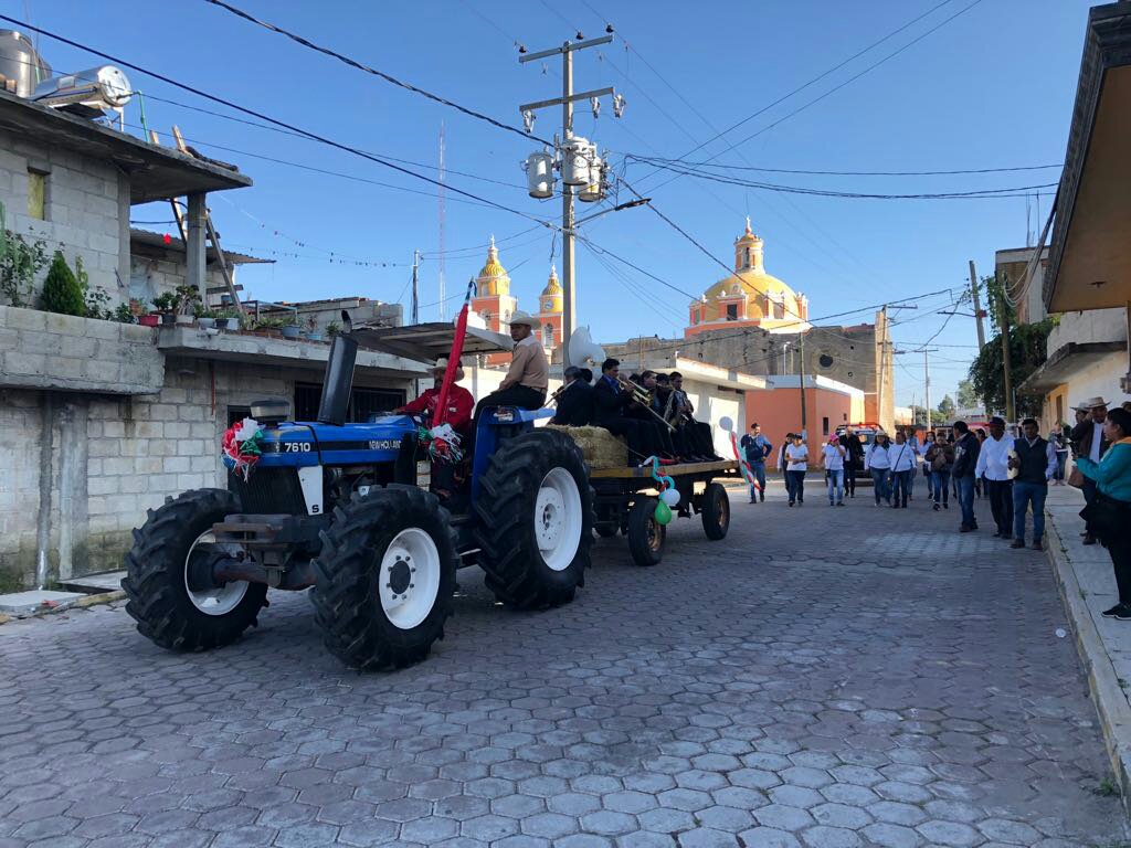 Una banda musical amenizó el recorrido y el tronido de cohetones dio aviso de la presencia del contingente que recorrió comunidades y calles de Papalotla.