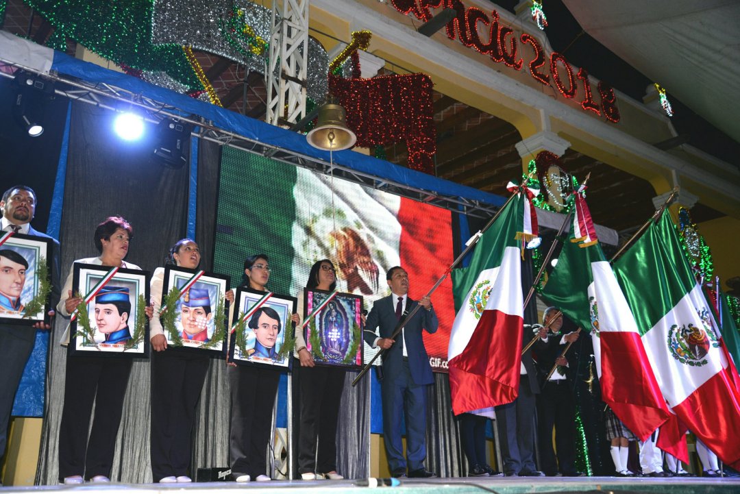 Durante la ceremonia Sánchez Flores estuvo acompañado por integrantes del Cabildo, así como del Comisariado Ejidal, Quirino Claudio Hernández Castillo, de la Reina de las Fiestas Patrias 2018, Yamile del Razo Romano y sus princesas, Sofía Tovar Benítez y Paola Muñoz Juárez, además de su esposa la presidenta honorífica del DIF, Alicia Analy Rodríguez Pacheco y directores de las diferentes instituciones educativas del municipio.