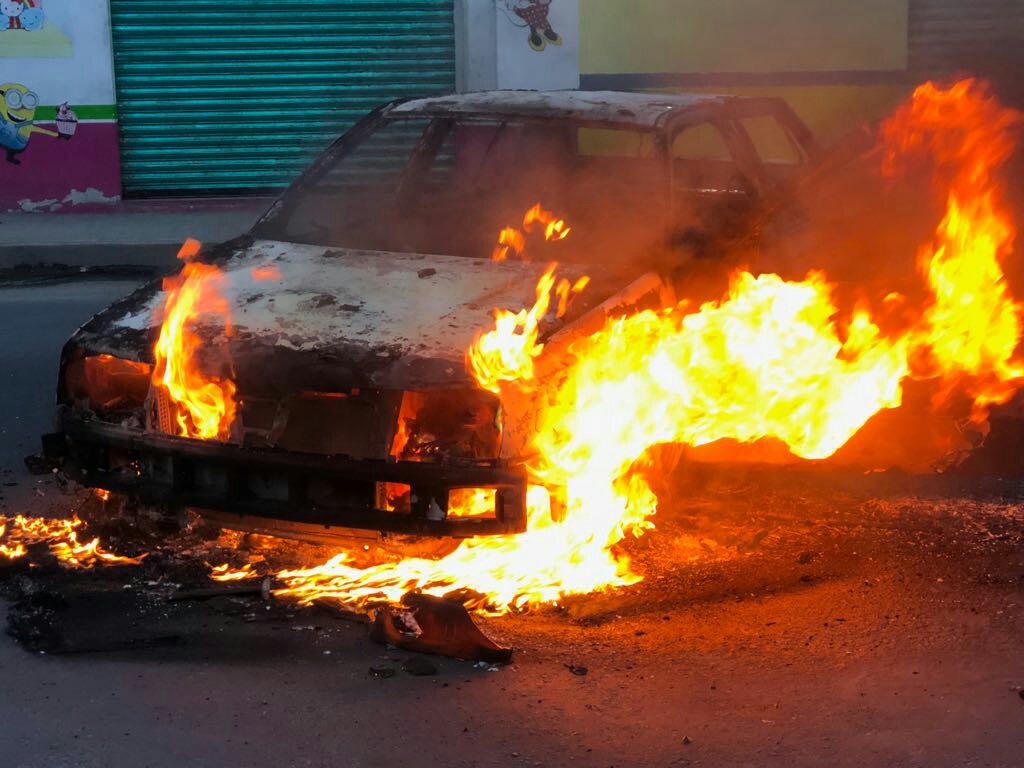 En este lugar le prendieron fuego a dicho vehículo y posteriormente representantes de gobernación y policías estatales lograron establecer un acuerdo para que liberaran a los implicados.