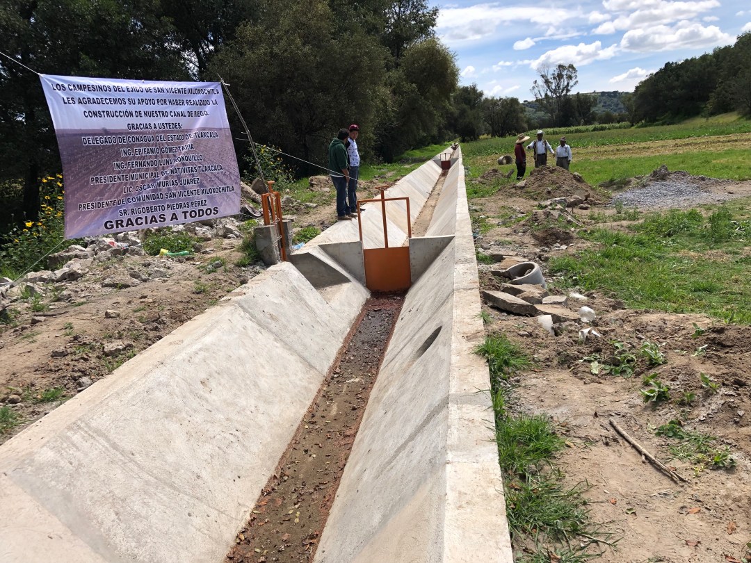 En un esfuerzo conjunto entre el municipio de Nativitas, Conagua, Gobierno del Estado y los beneficiarios, este martes, las autoridades realizaron la entrega de rehabilitación del canal de riego en San Vicente Xiloxochitla.