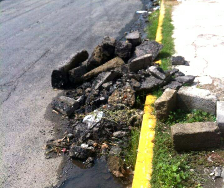 Y es que después de tres meses el personal del ayuntamiento recortó el tope que generaba inundaciones, dejaron el trabajo inconcluso con escombros a la orilla de la carretera que representan un peligro para los que conducen por la avenida Reforma.