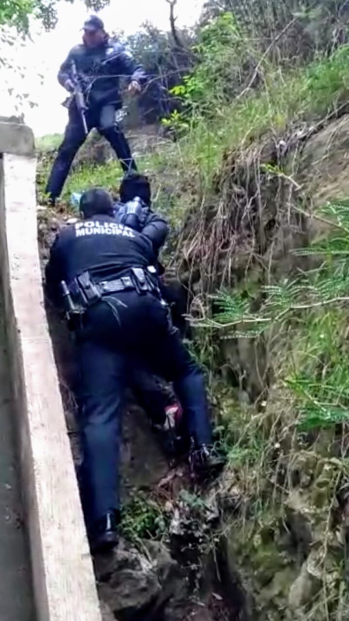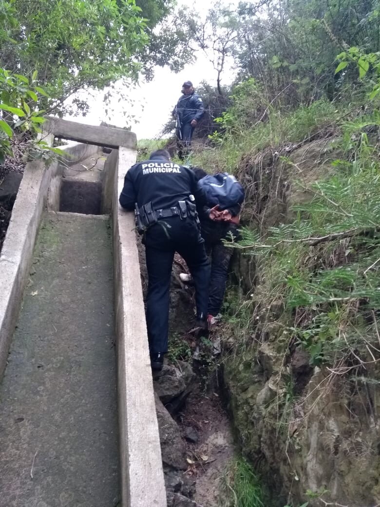 De inmediato, efectivos se presentaron en el lugar, donde tras solicitar refuerzos, se adentraron en la barranca donde se refugiaron los tres delincuentes y con el respaldo de los drones con que cuenta esta corporación policiaca, así como de decenas de vecinos que sumaron a la búsqueda, fue posible el aseguramiento de dos de los tres hampones.