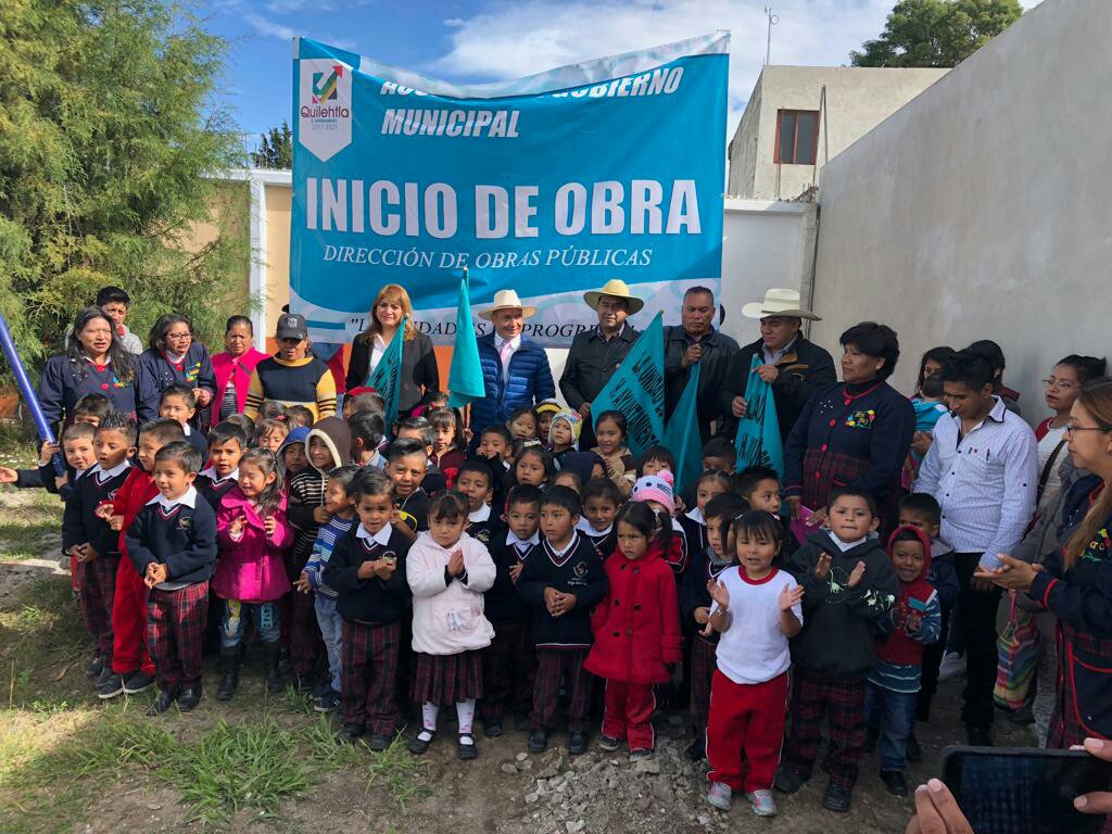 La gestión del alcalde de Quilehtla, Oscar Pérez Rojas, permitió atraer recursos extraordinarios para la construcción de dos aulas y sanitarios para el jardín de niños, Guadalupe Bernal de Cuéllar.