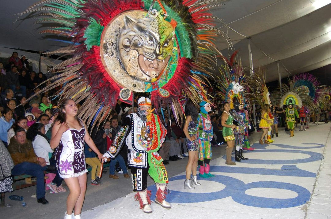 Los majestuosos penachos y las bellas doncellas de Santa Úrsula “Cuna del Huehue”, acapararon la atención de los miles de asistentes.