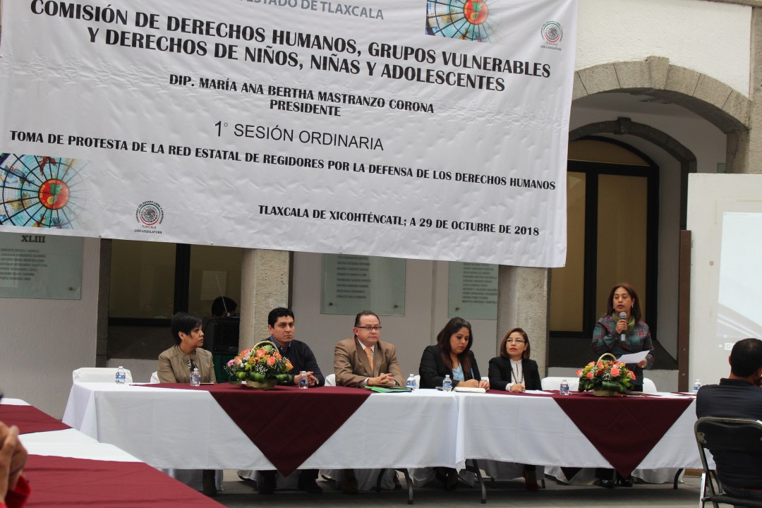 En la primera sesión ordinaria de la Comisión de Derechos Humanos, Grupos Vulnerables y Derechos de Niñas, Niños y Adolescentes de la LXIII Legislatura Local, que preside la Diputada María Ana Bertha Mastranzo Corona, rindieron protesta los integrantes de la Red Estatal de Regidores por la Defensa de los Derechos Humanos.
