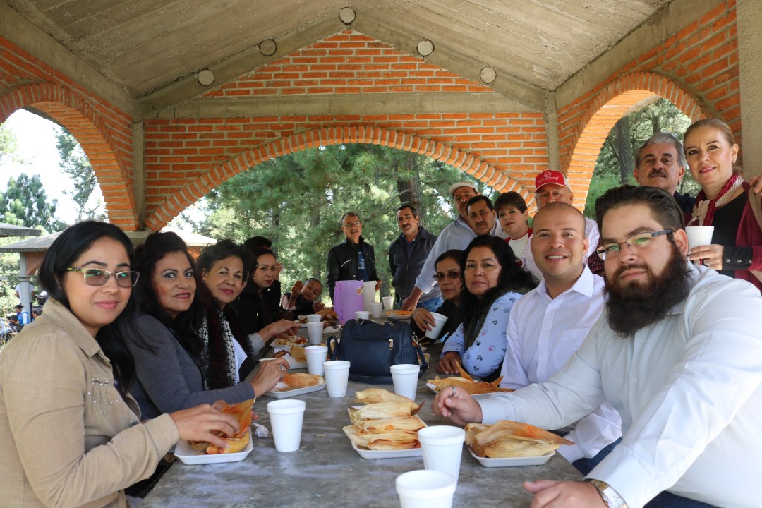 En un desayuno típico compuesto de tamales, memelitas y atole, ofrecido a los visitantes en el paraje Cuetlachac de la comunidad de San Pedro Tlalcuapan, Domínguez Rugerio reconoció la coordinación entre los pueblos hermanos y manifestó su alegría por los más de cincuenta años cumplidos.