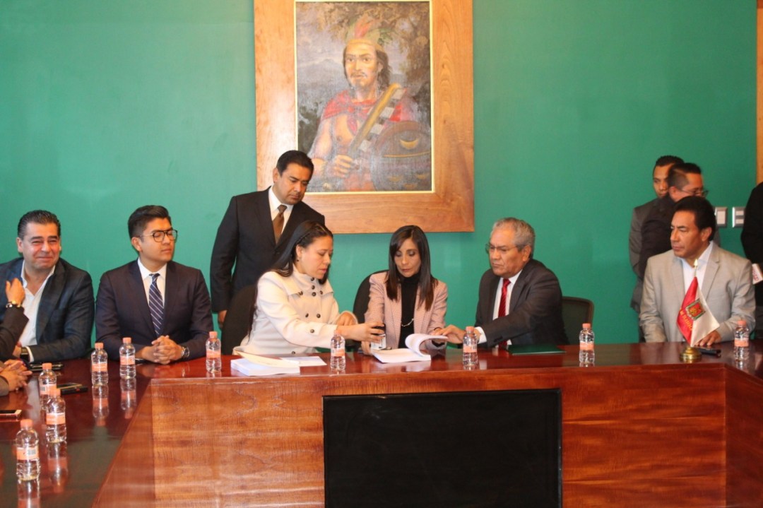 La presidenta de la Mesa Directiva del Congreso Local, Diputada Luz Vera Díaz, recibió este jueves de manos de la titular de la Secretaría de Planeación y Finanzas del Gobierno del Estado, Alejandra Nande Islas, el paquete económico para el ejercicio fiscal 2019.