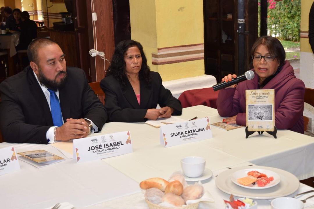 La mañana de este viernes, el alcalde de Xicohtzinco, José Isabel Badillo Jaramillo, acompañado por la historiadora, Silvia Catalina Badillo López, presentaron el libro Dolor y muerte en Xicohtzinco: Influenza 1918.