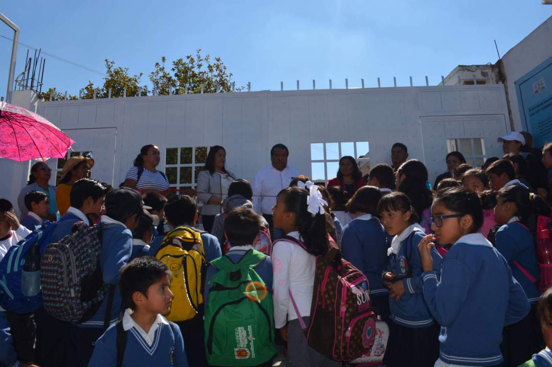 Acompañado de autoridades educativas, comités de padres de familias, alumnos y docentes de las Primarias Mariano Matamoros y Gabriela Mistral, el expresidente municipal de Hueyotlipan, Petronilo Roldan Pérez, realizó el corte del listón inaugural del nuevo portón que servirá de entrada y salida para ambas instituciones.