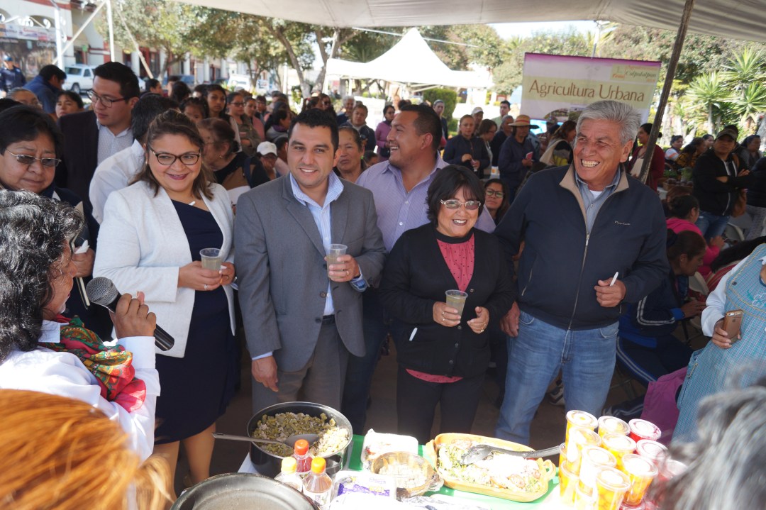 En la plaza cívica del jardín central, se hizo la inauguración que encabezó el alcalde, Neptalí Gutiérrez Juárez. Ante público en general, productores y técnicos asesores de la Secretaria de Fometo Agropecuario (SEFOA), Gutiérrez Juárez hizo mención de los tres proyectos que participaron en la feria agroalimentaria: Agricultura urbana, cadena nopal y productos artesanales, todos 100% calpulalpenses.