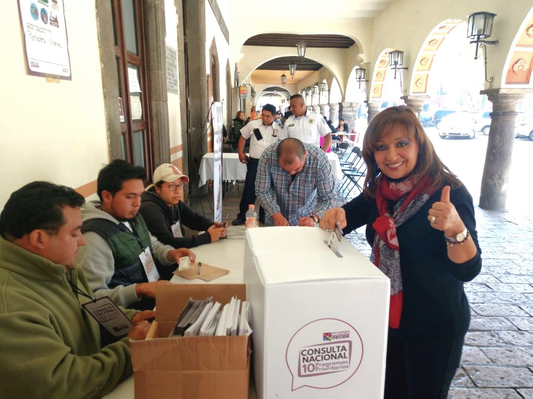 La coordinadora del gobierno de transición en Tlaxcala, Lorena Cuéllar Cisneros acudió la tarde de este sábado a ejercer su voto a favor de los proyectos que pretende llevar a cabo Andrés Manuel López Obrador (AMLO) una vez que tome protesta como presidente constitucional de la República.