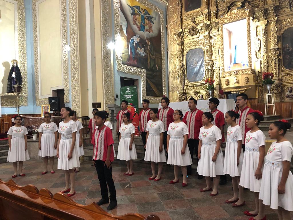 El Coro Infantil y Juvenil de la Ciudad de Tlaxcala, interpretó alegres piezas musicales al unísono, que fueron del agrado de los presentes.