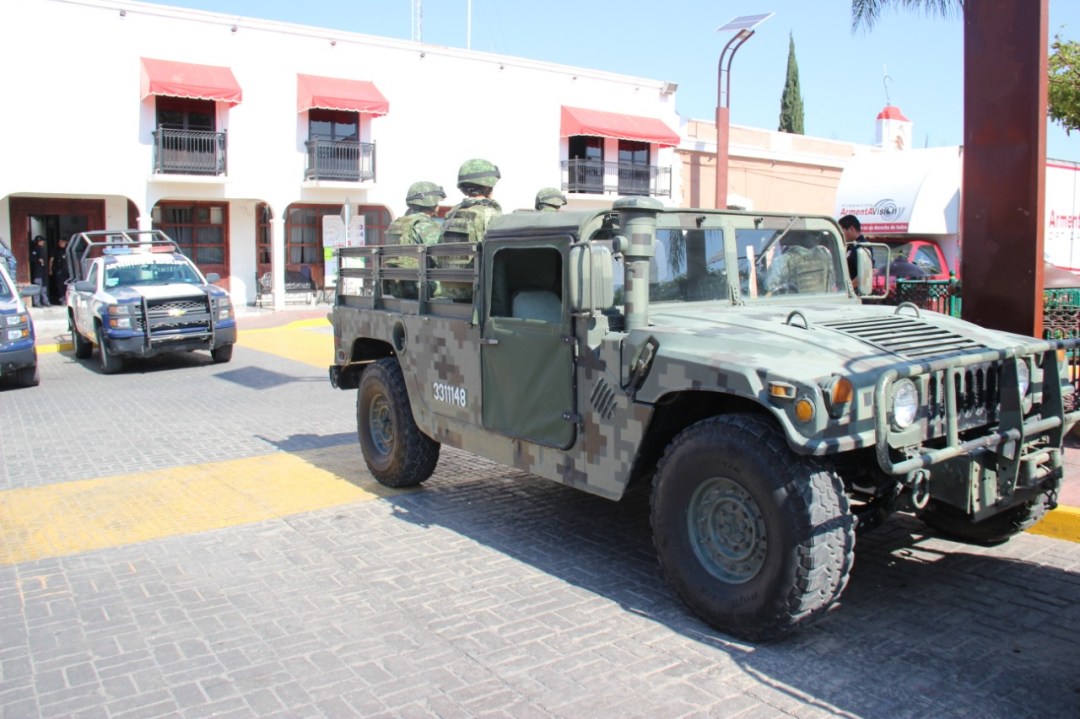A partir del primero de diciembre de este año, un convoy de seis vehículos con diversos elementos militares se establecieron en el Centro de Monitoreo, que recientemente el alcalde habilitó en la unidad deportiva de Potrero.