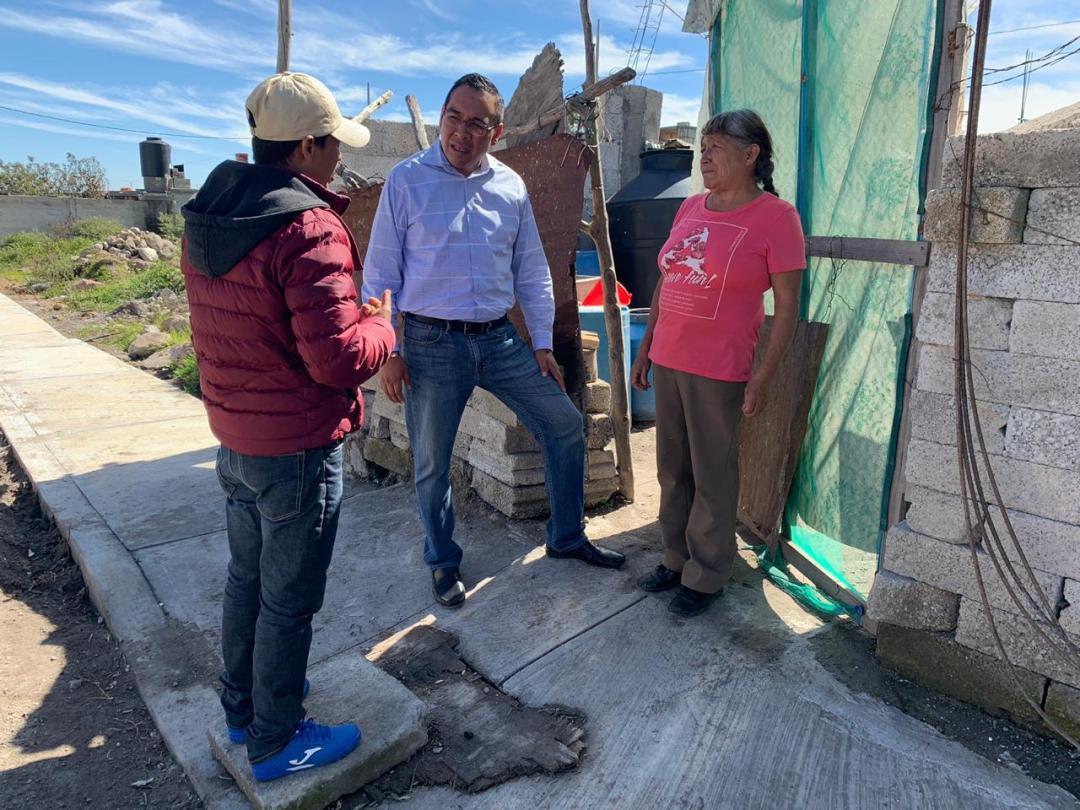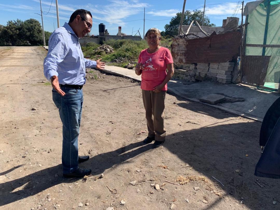 • En su visita por la colonia Antorchista revisó los avances de colocación de guarniciones y banquetas