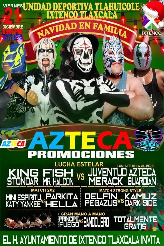 En esta función de lucha libre profesional, se presentarán King Fish y Stondar Mr. Halcon, contra Juventud Azteca y Merack, además de Mini Espitiru, Parkita, Katy Yankee y Hella, contra Delfín, Kamuz, Pegazus y Dark Side, además del mano a mano de Príncipe Fuego contra Bandolero.