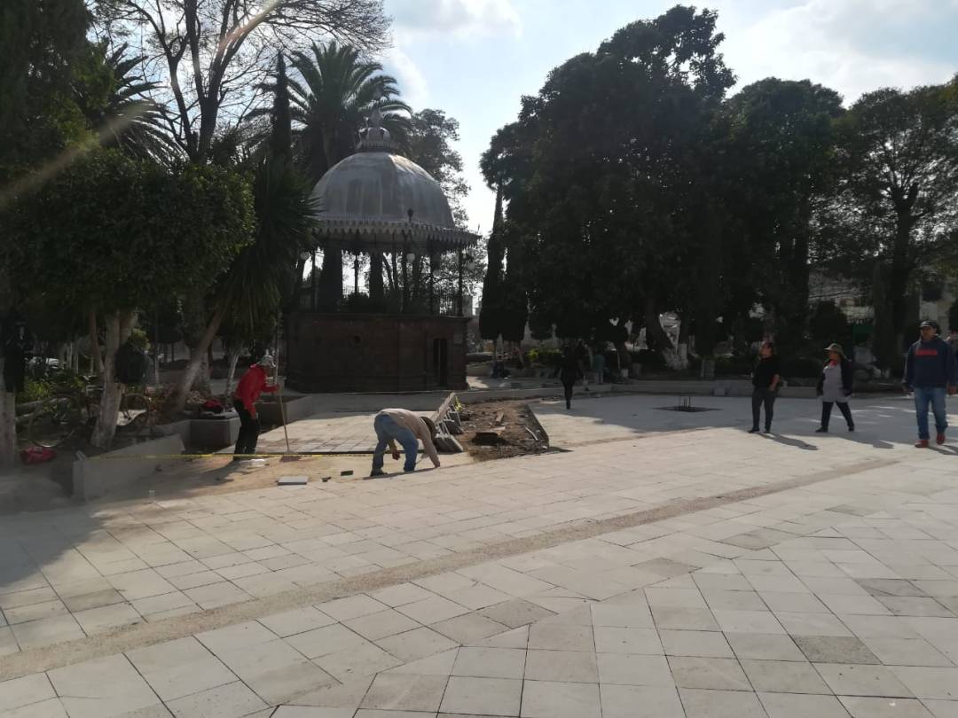 Los trabajos consisten en la pavimentación de la carretera principal con concreto estampado, además de espacios peatonales, mobiliario urbano, la rehabilitación de las fachadas en el primer cuadro del municipio.