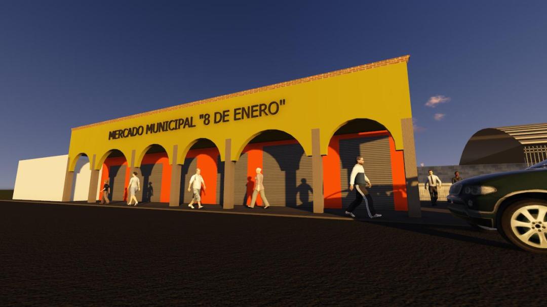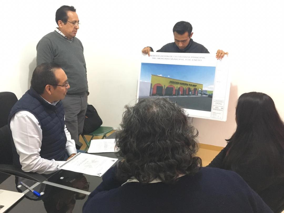 Caballero Yonca, monstro el diseño de la fachada que dará nueva imagen al mercado municipal, que busca con esto, reactivar la economía y homologar el diseño con la actual imagen urbana de la localidad.