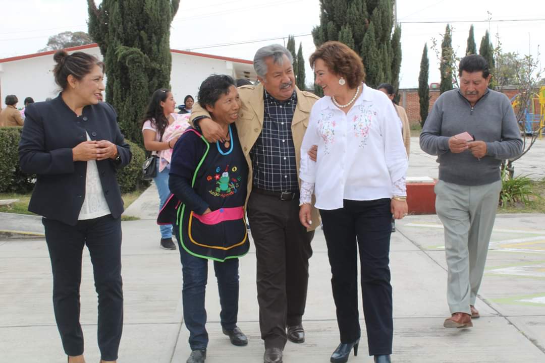 Así, en el centro del patio central, alumnos, maestros y padres de familia, se congratularon por la visita a la escuela.