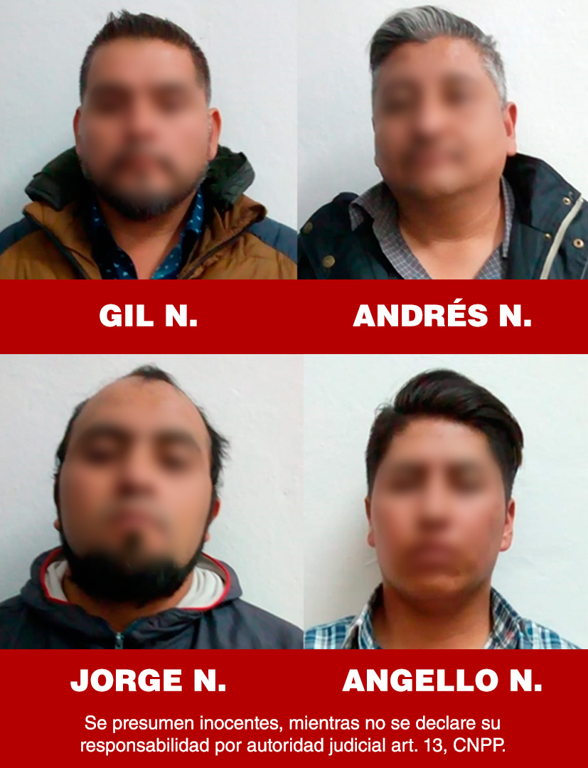 Por lo anterior, quienes se identificaron como Angello N., Gil N., Andrés N., y Jorge N., fueron puestos a disposición del Agente del Ministerio Público Federal.
