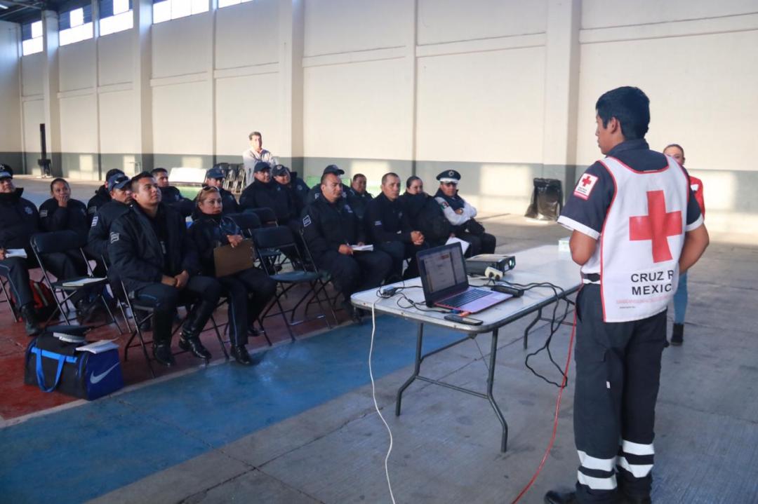 Con la finalidad de atender emergencias básicas como primeros respondientes, paramédicos de la Cruz Roja capacitaron a elementos de seguridad pública de Papalotla en primeros auxilios.