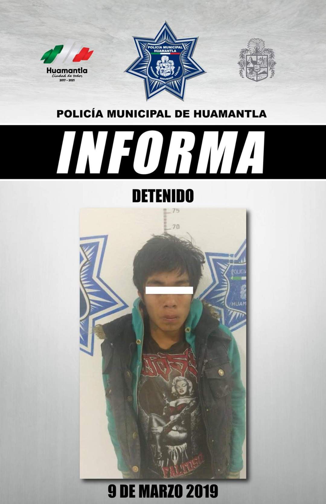Tras el alertamiento oportuno, los oficiales se dieron a la tarea de realizar un recorrido por las principales calles del centro de la ciudad y fue en la calle Abasolo esquina con Guerrero donde interceptaron a un masculino que vestía pantalón de color beige, sudadera verde y chaleco color negro, características que minutos antes había dado a conocer la fémina, y quien al ver la presencia policiaca intentó darse a la fuga.