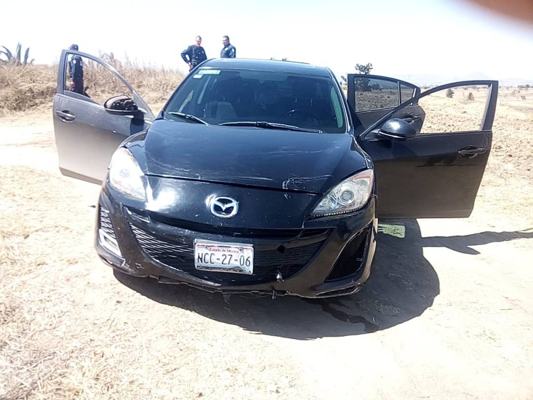 Tras el reporte, la policía montó un operativo de búsqueda, misma que llevó a la carretera Nanacamilpa – Mazapa, en donde se hallaron los vehículos con las características referidas, en donde al notar la presencia policial, los presuntos responsables abandonaron la unidad marca Hino 300 de color blanco y huyeron a bordo del vehículo negro marca Mazda, para emprender la huida sobre la misma carretera.