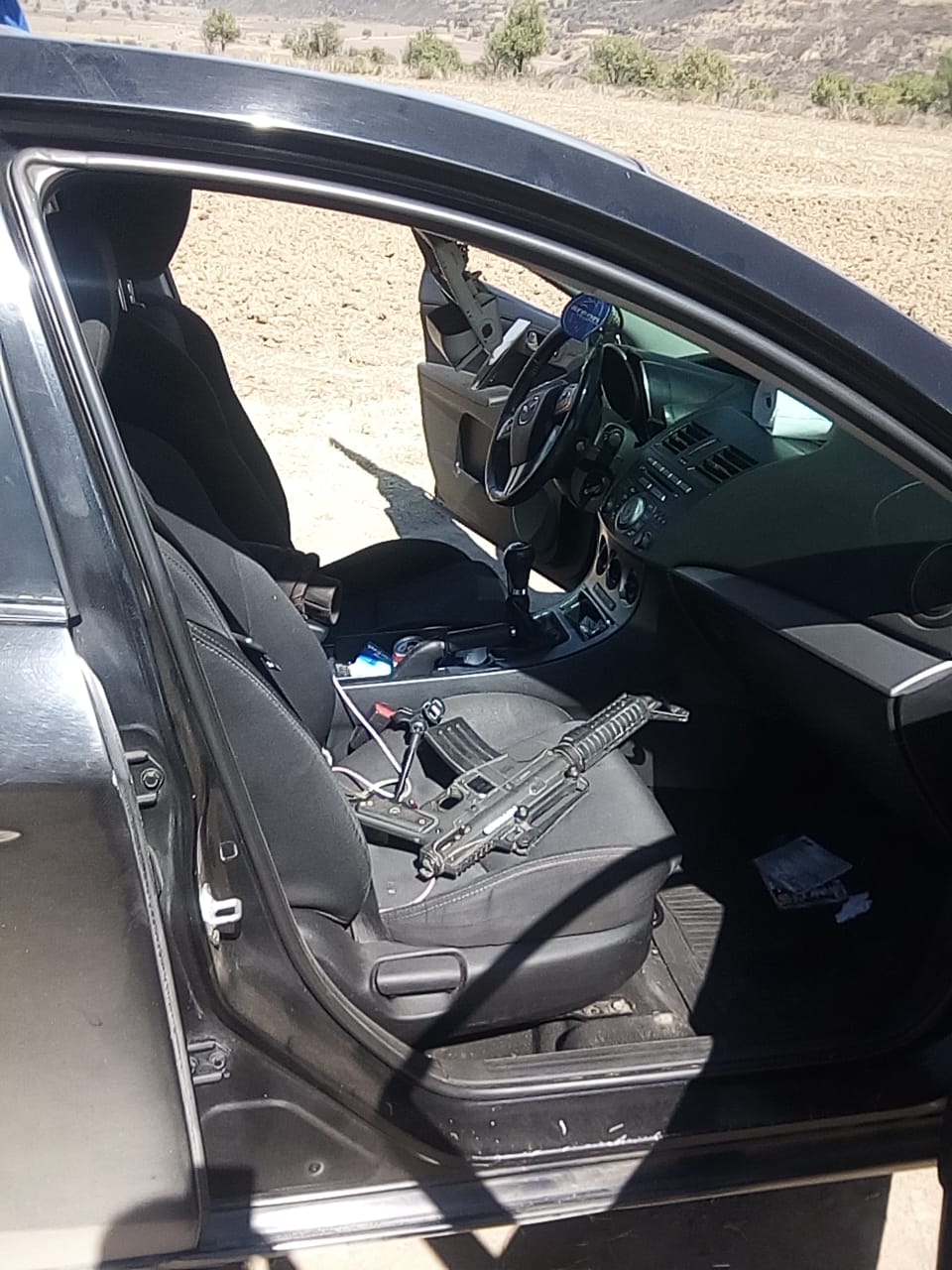 Al iniciar la persecución, los tripulantes del Mazda negro comienzan a detonar armas de fuego en contra de los guardianes del orden, por lo que estos responden a la agresión, hasta llegar al paraje denominado curvas de Oxocopan, en donde detiene su marcha el vehículo negro con placas de circulación NCC-27-06 particulares del estado de México, del que descienden tres sujetos para emprender la huida a pie.