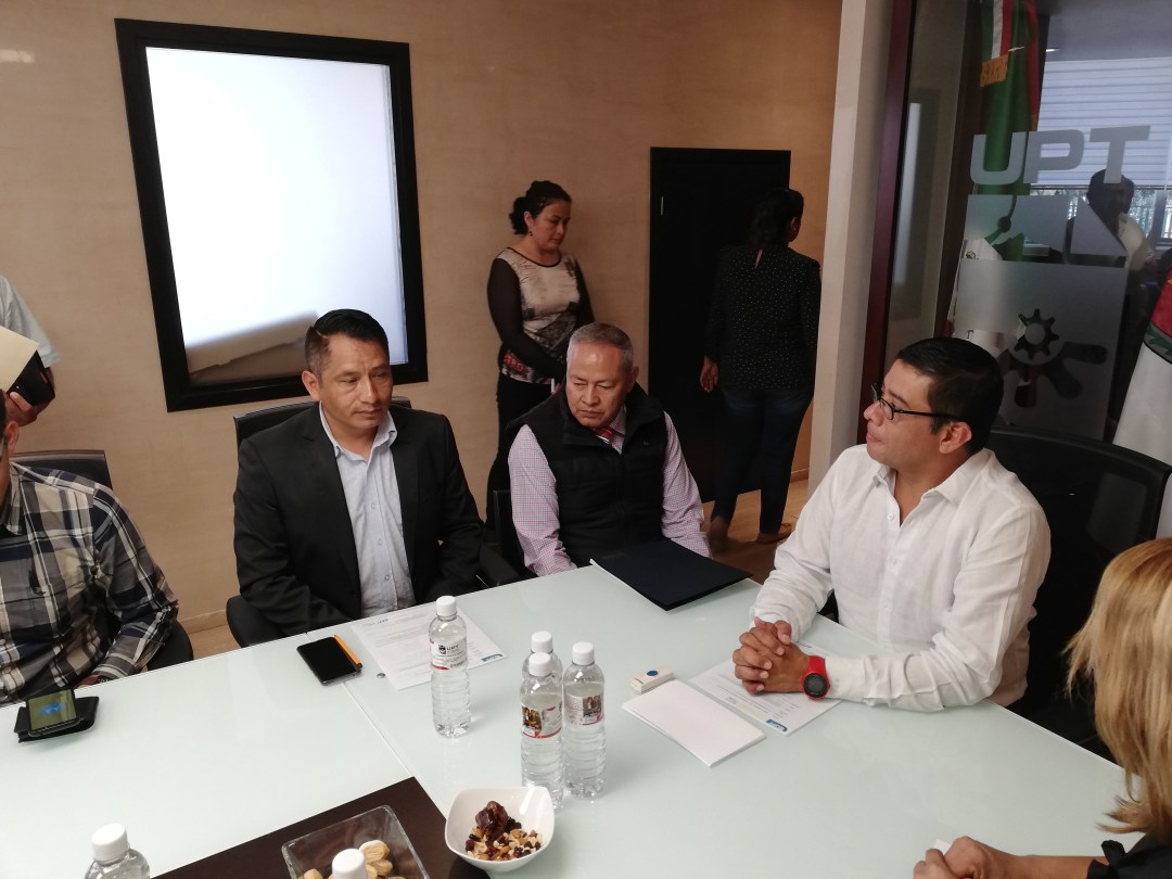 Ambos personajes, formalizaron la firma de este convenio, en donde acudieron autoridades municipales y directivos de la UPTx.