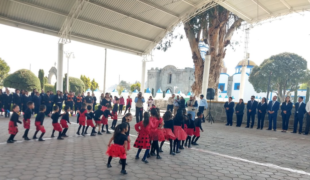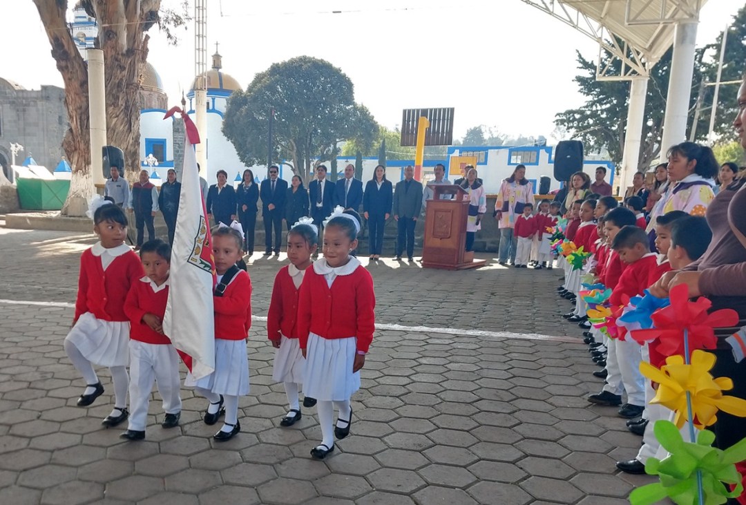 El evento fue dirigido por el Jardín de Niños de la cabecera municipal, Juan Jacobo Rousseau, quienes además deleitaron a los asistentes con una poesía y dos bailes infantiles en honor al inicio de la primavera.