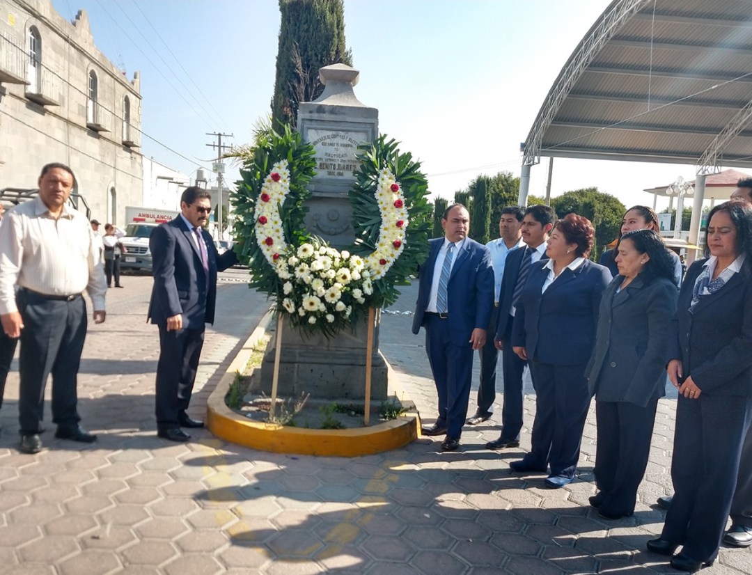 Previo a este evento, el alcalde, junto con integrantes de su cabildo, colocó una ofrenda floral y montó una guardia de honor en el busto de Benito Juárez que se encuentra en la avenida principal de este municipio.