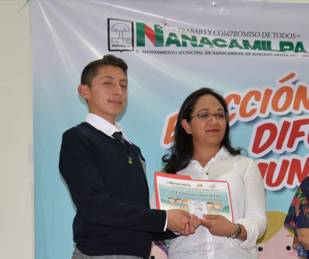 Después de ser elegido como el niño difusor para representar al municipio, el alumno Ángel Germán Sánchez Rodríguez, de la Escuela Telesecundaria “Miguel Hidalgo”, participó en la semifinal del certamen realizado en Cacaxtla, ante 42 participantes de diferentes municipios, organizado por el Sistema Estatal para el Desarrollo Integral de la Familia (DIF), logrando su calificación para la final del concurso.
