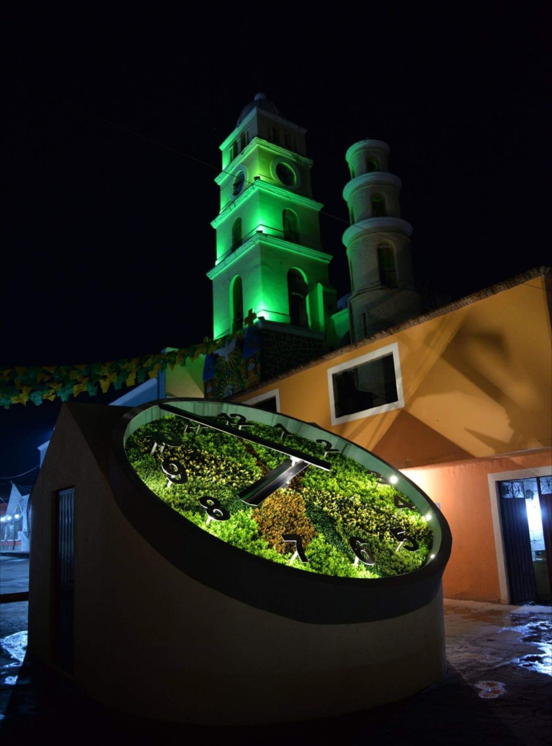 Con un monto de inversión de 509 mil 123.99 pesos, se construyó un Reloj Ornamental de 2 carátulas, beneficiando a 12 mil 177 habitantes.