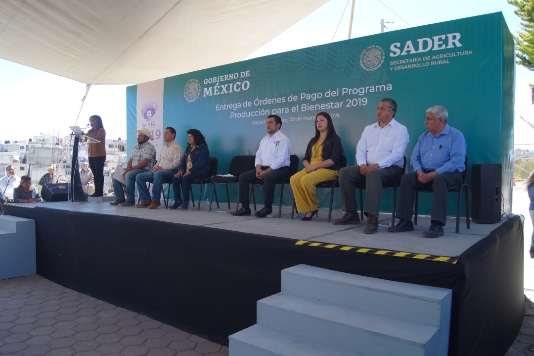 Como parte de la entrega de apoyos por parte del gobierno federal, en el municipio de Calpulalpan, se entregaron las órdenes de pago a más de 5 mil productores que forman parte del programa “producción para el bienestar 2019”, y para verificar la entrega se hiciera de manera directa, estuvo presente la delegada federal para los programas en el Estado de Tlaxcala, Lorena Cuellar Cisneros.