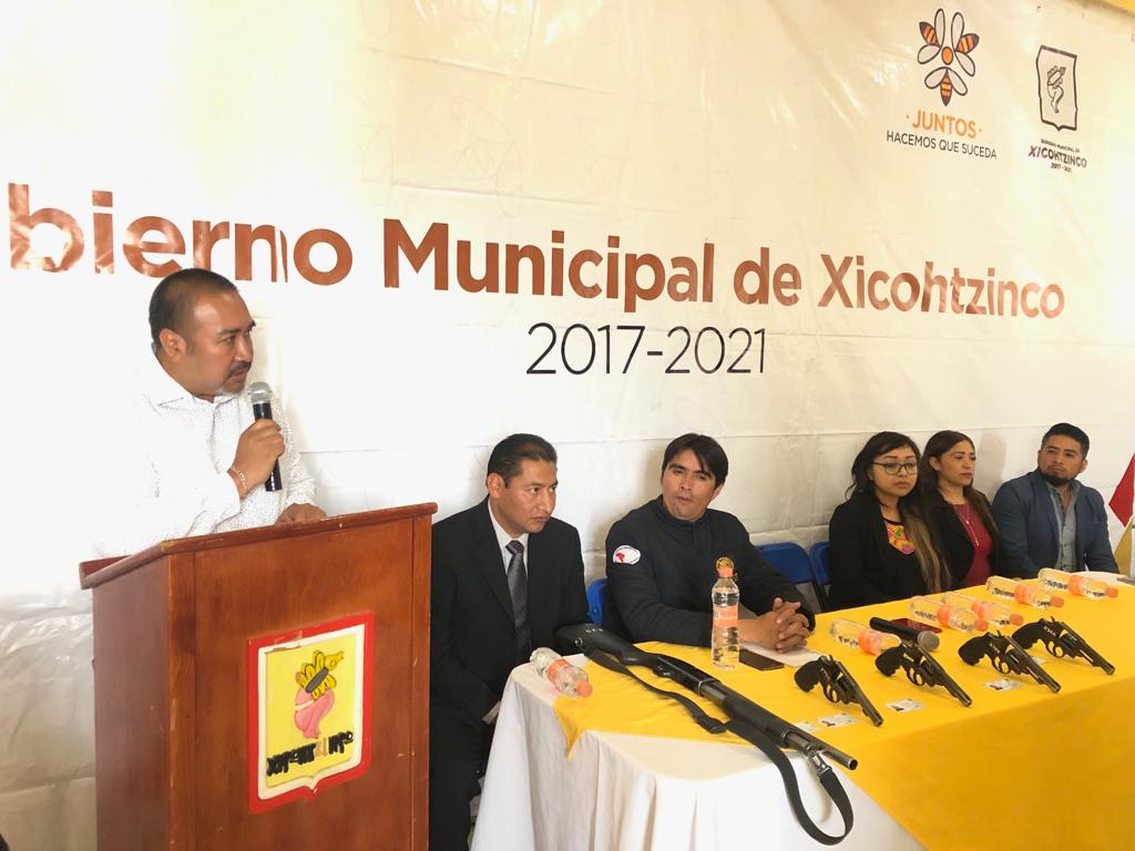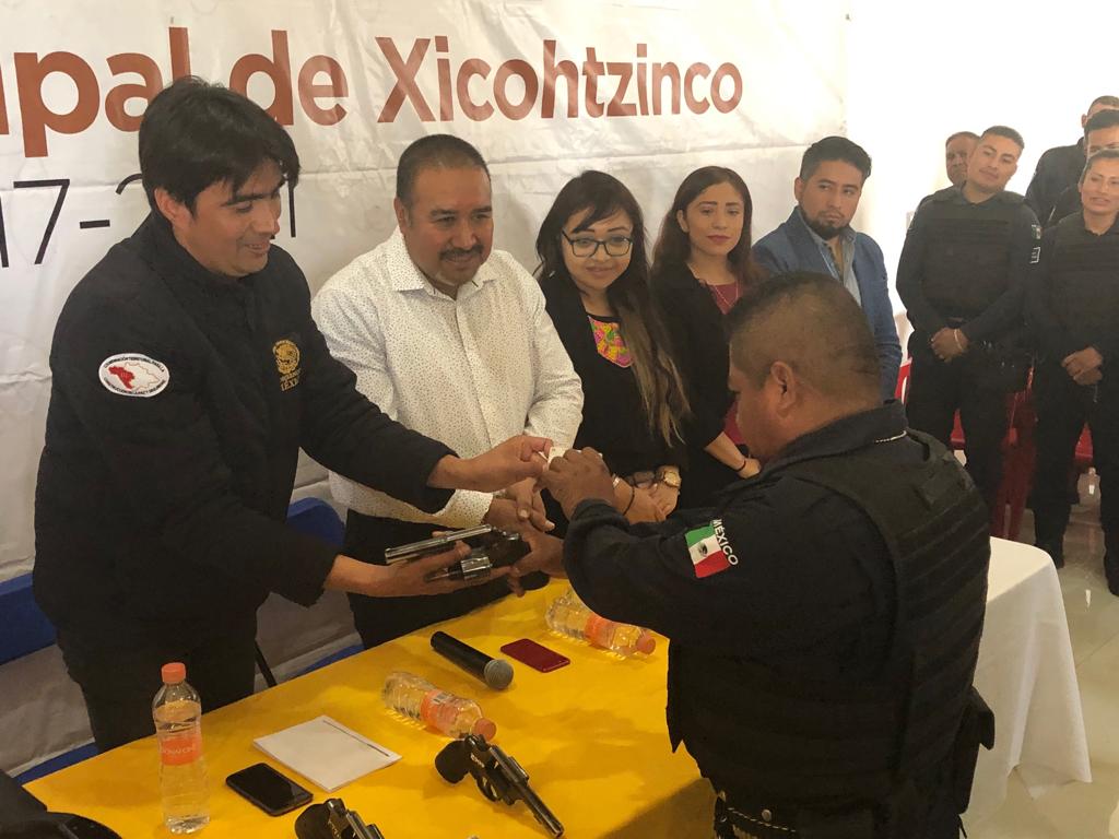 Con la finalidad de fortalecer el desempeño de la corporación de Xicohtzinco, el alcalde José Isabel Badillo Jaramillo, así como la coordinación regional del gobierno federal, realizaron la entrega de armamento a policías municipales.