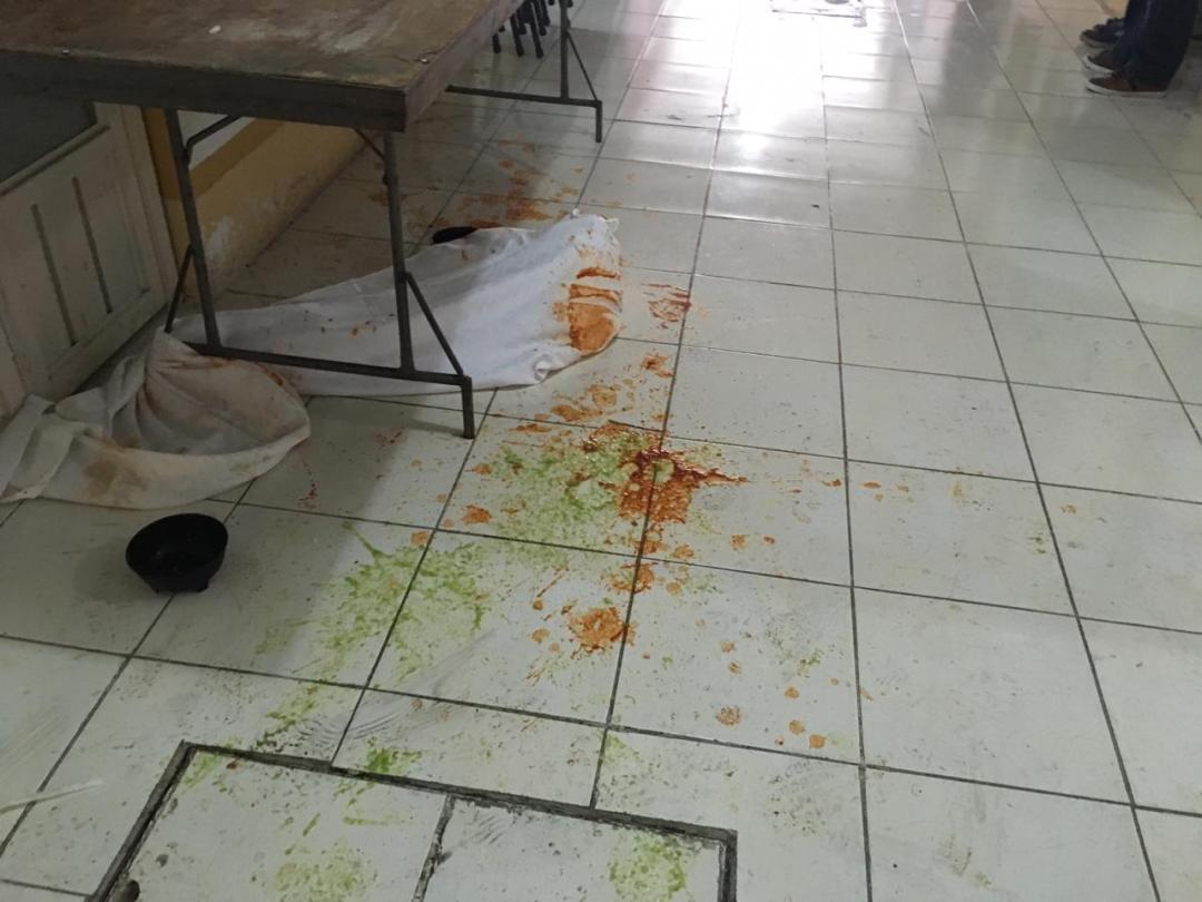 Los disidentes tomaron lo que encontraron en las mesas que se habían colocado para ofrecer un refrigerio a los mandos policiacos, por lo que aventaron salsa picante en la cara de algunas mujeres.