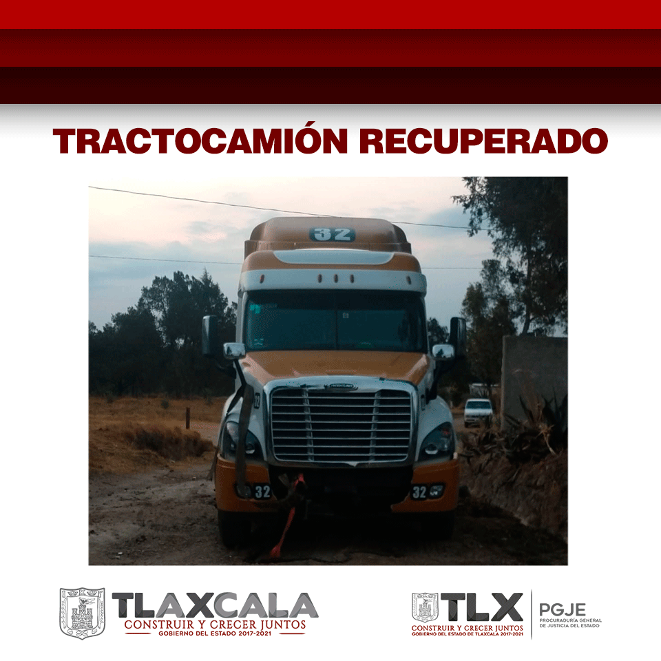 Sin embargo, los policías de investigación les dieron alcance más adelante, asimismo recabaron los números de identificación vehicular y consultaron el estatus legal del tractocamión; de esta manera, fueron informados que contaba con reporte de robo vigente de fecha 7 de abril en territorio tlaxcalteca.
