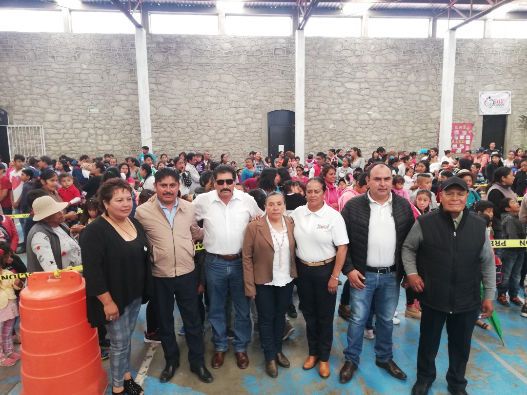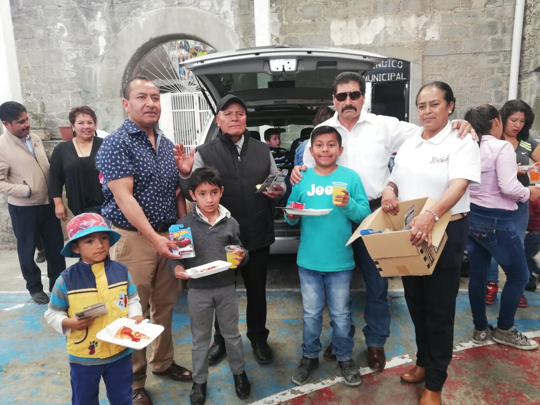 Más de 900 niños, acompañados por sus padres, comenzaron el día disfrutando de una deliciosa pizza, además de un regalo sorpresa que fue entregado de manos del presidente municipal, su esposa, Estela Pérez Ruiz, e integrantes del cabildo.