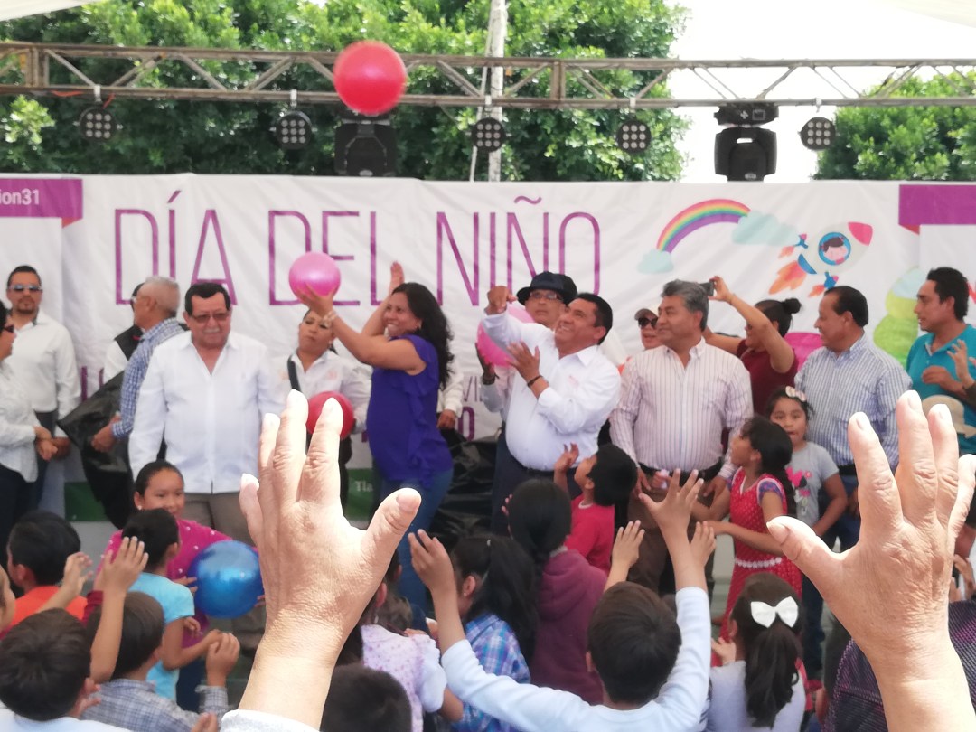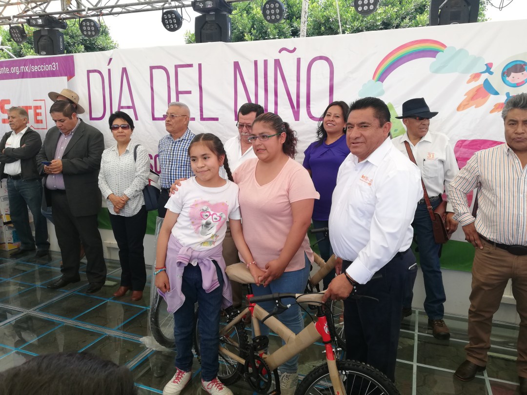 Con juegos mecánicos, rifas y sorpresas, Demetrio Rivas Corona, Secretario General de la Sección 31 del Sindicato Nacional de Trabajadores de la Educación (SNTE), encabezó el festejo de Día del Niño.