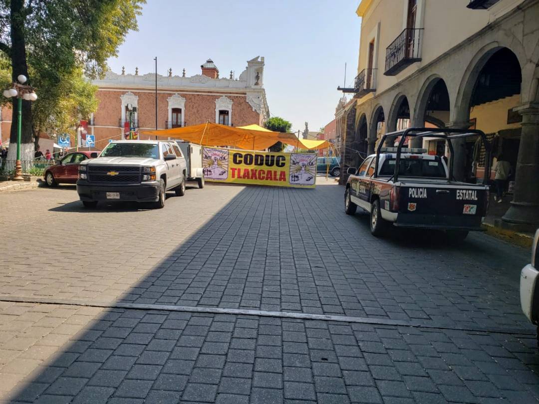 La Dirección de Seguridad Pública del ayuntamiento de Tlaxcala, informó que debido a la manifestación que realiza la Coalición de Organizaciones Democráticas Urbanas y Campesinas A.C. (CODUC) en la Plaza de la Constitución de la capital, se mantendrán cierres viales durante el día en el primer cuadro de la ciudad.