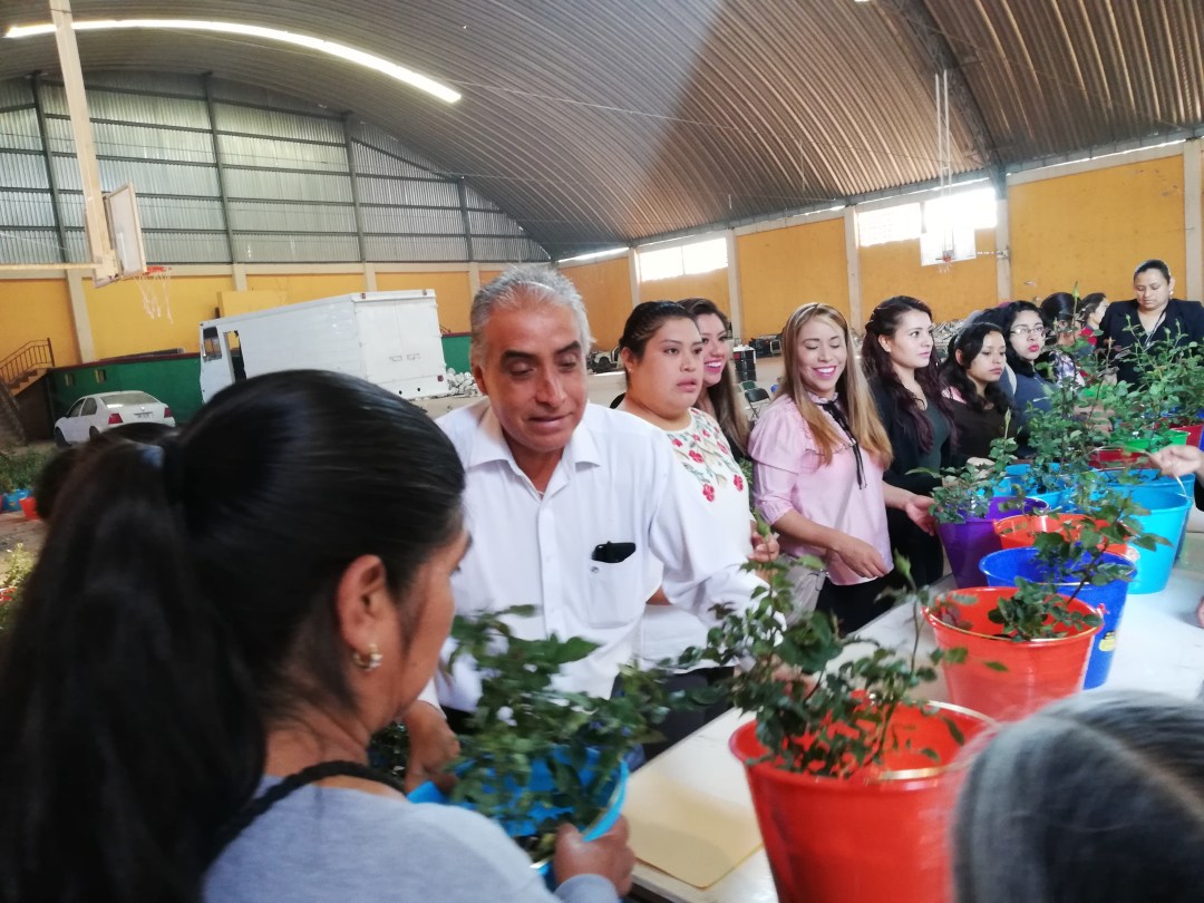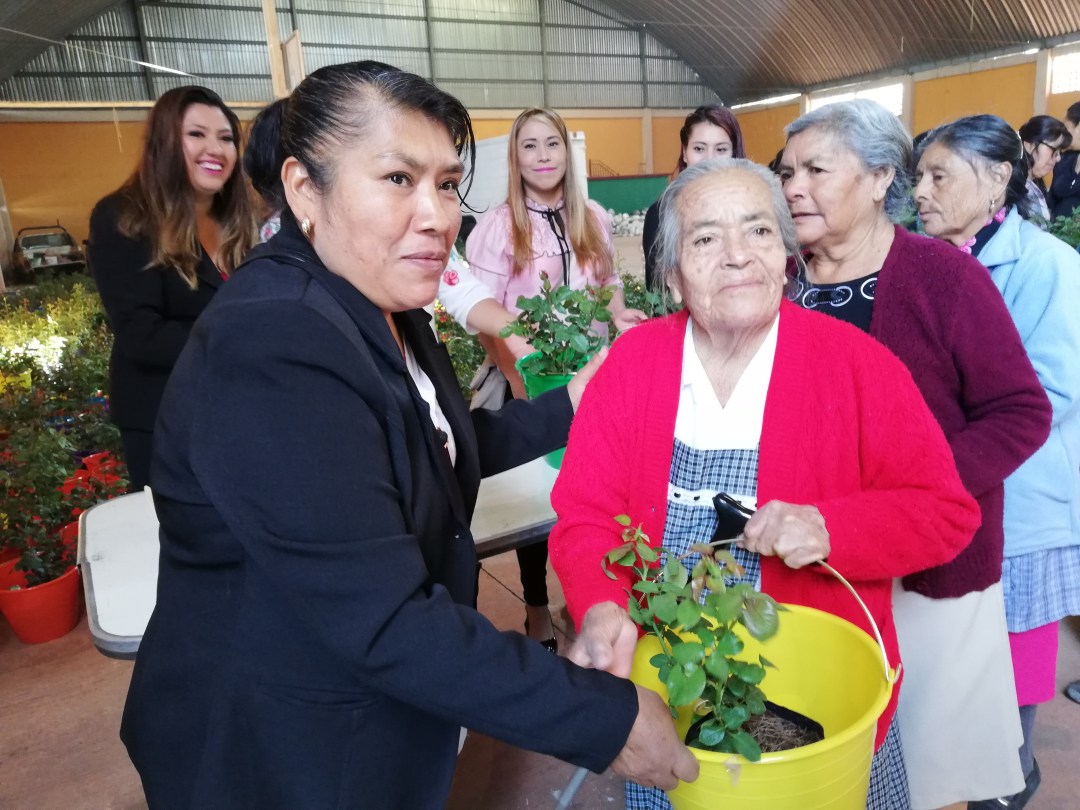 El presidente municipal fue el encargado de recibir personalmente a las mamás que asistieron al evento, con una rosa y una cubeta.