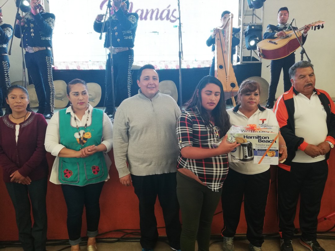 Alrededor de mil mamás se dieron cita a este festejo organizado por el ayuntamiento de Tecopilco, que comenzó con la presentación del Mariachi Águilas de México, que deleitó a las asistentes con diferentes canciones.