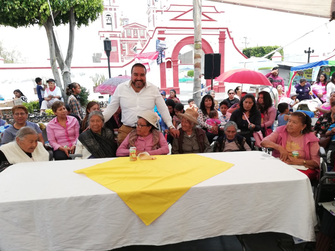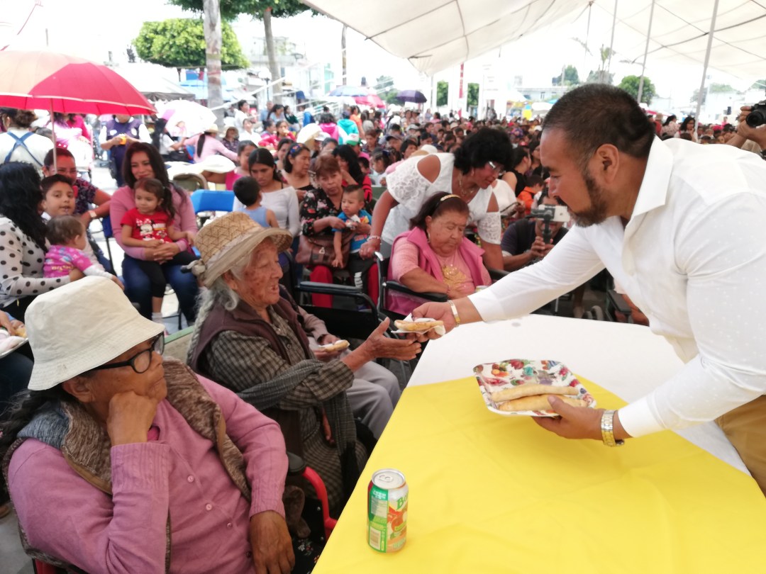 El alcalde entregó personalmente alimentos a las mamás de edad avanzada que se dieron cita en este lugar y que por su condición vulnerable, fueron asignadas en un lugar especial para que disfrutaran el evento.