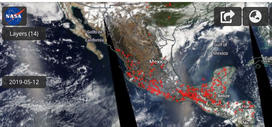 La fotografía satelital de la NASA muestra de manera alarmante esta situación, en donde los estados con mayor superficie afectada son: Puebla, Guerrero, Oaxaca, Chiapas y el Estado de México.