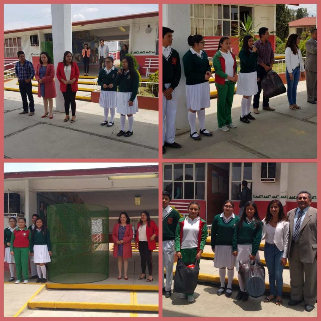 Fernanda Montiel Lima, Michelle Vásquez Ángulo, Carlos Palafox Torres y Anel Martínez Pérez, realizaron la gestión ante las Diputadas Locales de balones, cestos de basura, redes deportivas y contenedores para reciclar PET, mismos artículos que fueron entregados en días pasados para uso de los alumnos de la escuela para fomentar la actividad física y acciones en favor del medio a través de la reutilización de botellas de plástico.