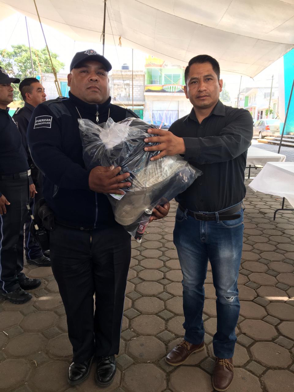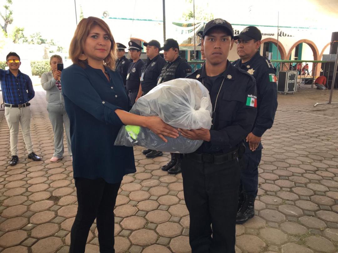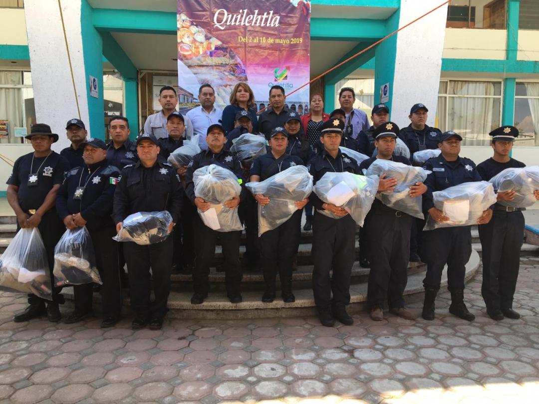Con la finalidad de fortalecer la labor de los elementos de se guridad pública y vialidad del municipio de Quilehtla, el alcalde Oscar Pérez Rojas, realizó la entrega de uniformes y equipo para los elementos.