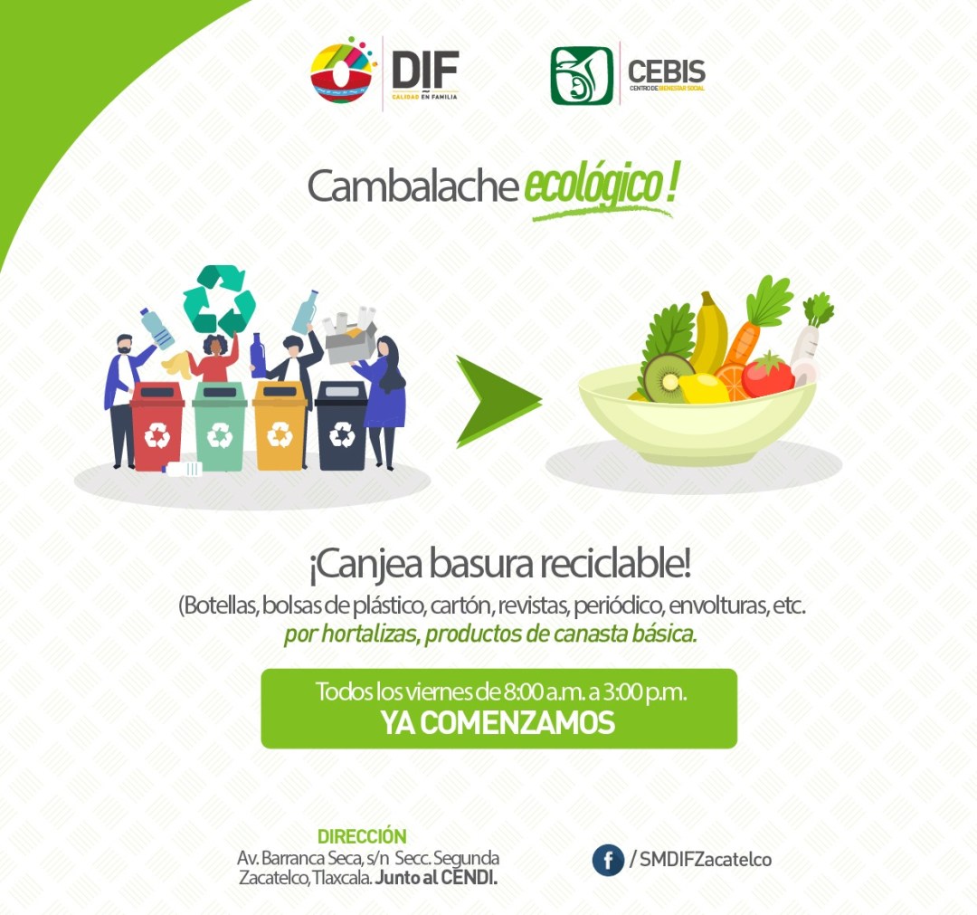 Como una alternativa más para promover el reciclaje de productos, el Sistema Municipal para el Desarrollo Integral de la Familia (DIF) de Zacatelco, puso en marcha la campaña Cambalache Ecológico.