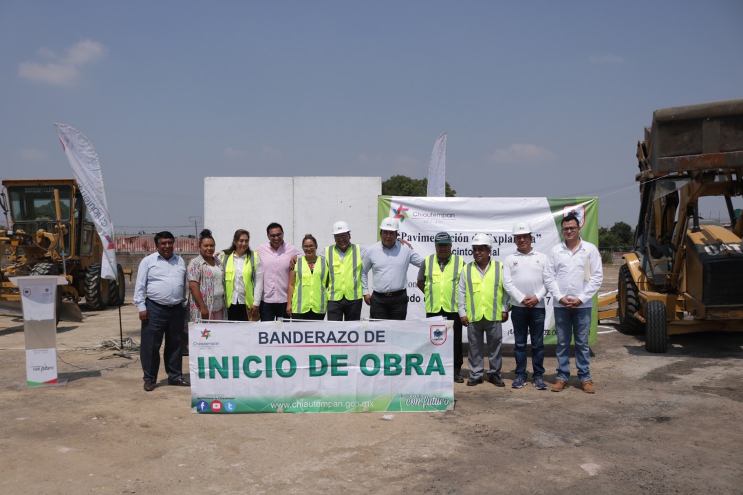 El Presidente Héctor Domínguez Rugerio dio el banderazo de inicio de la obra de pavimentación de la explana del recinto ferial de Chiautempan, así como al inicio en la construcción de las oficinas que albergarán a protección civil del Municipio.